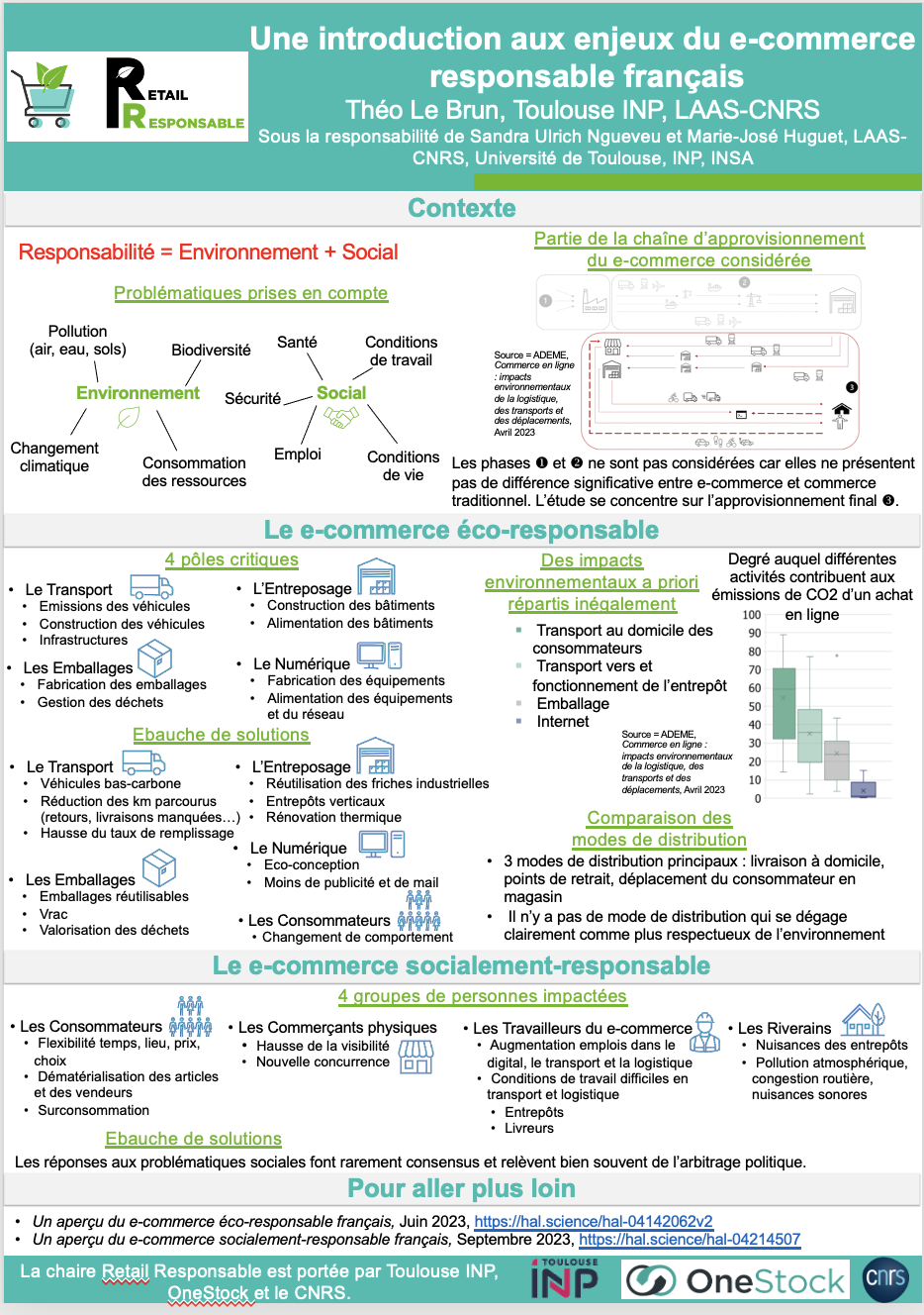 La chaire Retail Responsable est portée par l’Institut National Polytechnique de Toulouse, la société OneStock et le Centre National de la Recherche Scientifique. Débuté en septembre 2022 et prévu pour cinq ans, ce projet de recherche et de formation vise à mettre les outils de Recherche Opérationnelle au service d’un développement responsable du e-commerce.